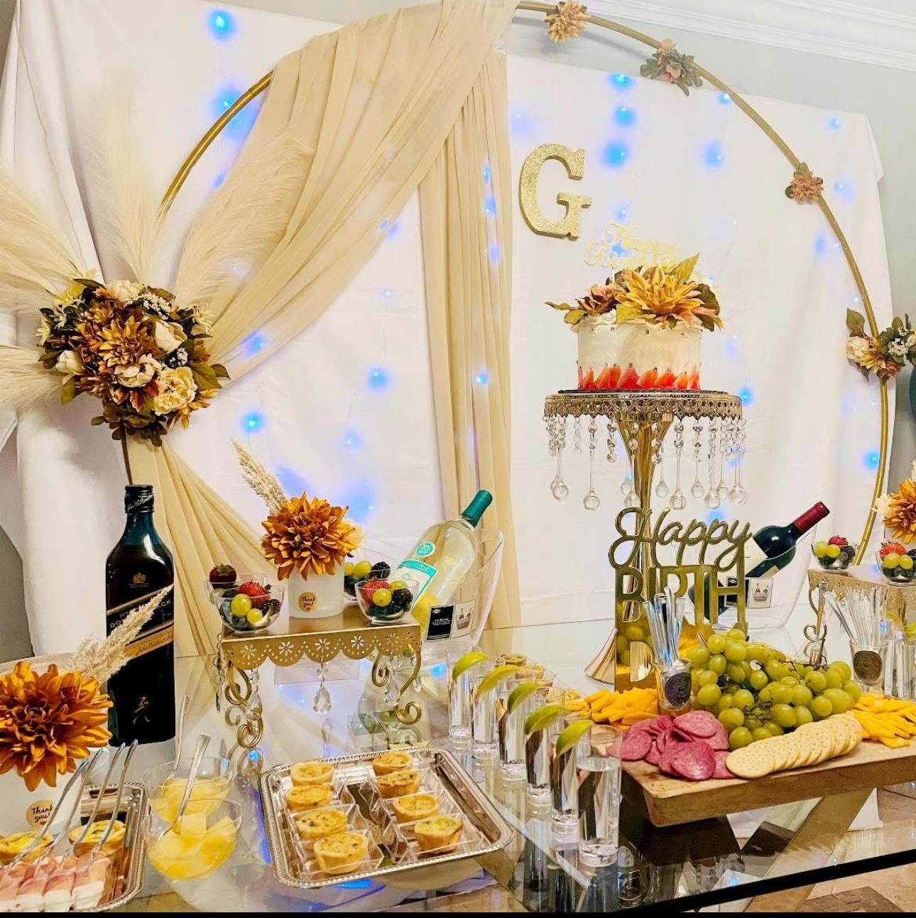 We offer a wide range of elegant pieces, perfect for weddings, birthdays, baby showers, and more.(Acrylic stands and risers for cakes,Serving platters and trays)